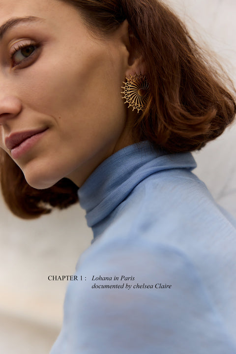 They come in a beautiful blue leather box with a velvet interior, plus a polaroid-style card that shares the story behind the building that inspired the design. It makes you really connect with your jewel! Now every time someone asks about my earrings (this happens a LOT), I get to share the story, and that's the key.. they’re always amazed!